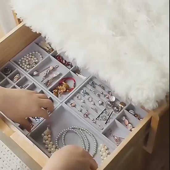 tangled necklaces and missing earrings! ✨ Our 4-piece velvet jewelry tray set is here to bring order and elegance to your collection. Stackable, stylish, and perfect for keeping all your treasures organized and safe. Get ready to rediscover your sparkle!