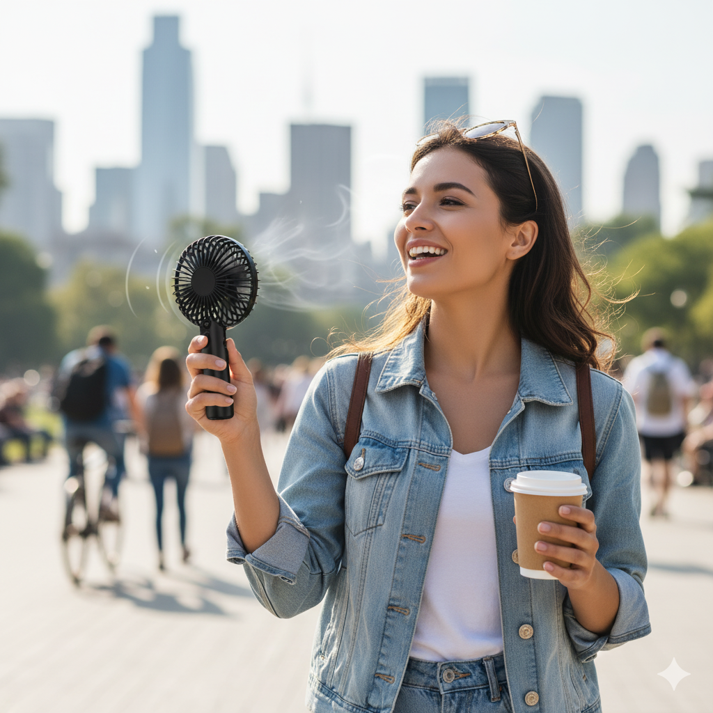 - ?Portable?-- Unique portable fan design, creative style, made of high-quality ABS, has a solid structure and pressure-resistant; ?So Cool?-- Beautiful Fans, Great travel fans for cooling or beauty in hot weather activities like sun bathing camping<br>